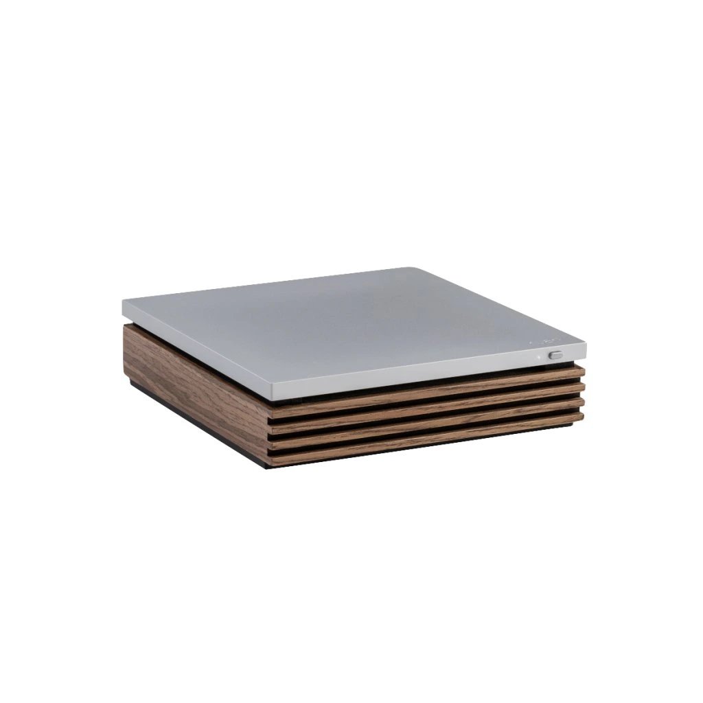 Prémiový design: Horní a spodní část z broušeného hliníku doplněná o ručně vyráběné dřevěné bočnice.