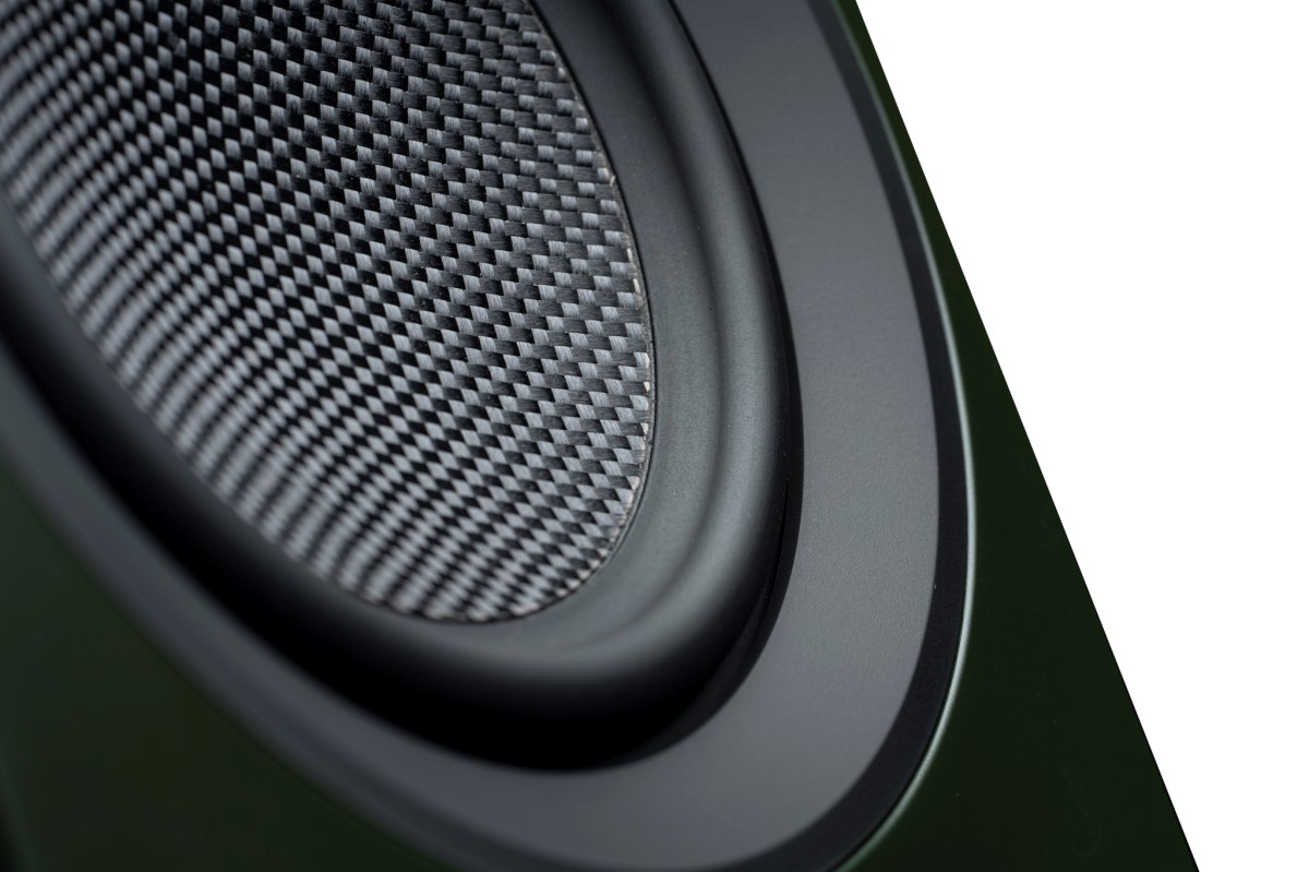 Karbonový woofer: 5" (130 mm) měnič z uhlíkových vláken pro dokonalou impulzní odezvu a nízké zkreslení.
