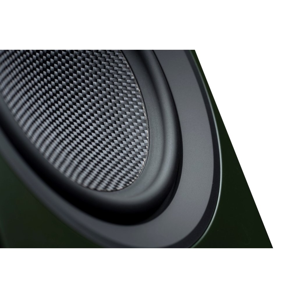 High-End materiály: Použití 5" basového měniče z uhlíkových a skelných vláken je v této cenové kategorii raritou. Zajišťuje extrémní tuhost a lehkost membrány pro rychlé a přesné basy bez zkreslení.